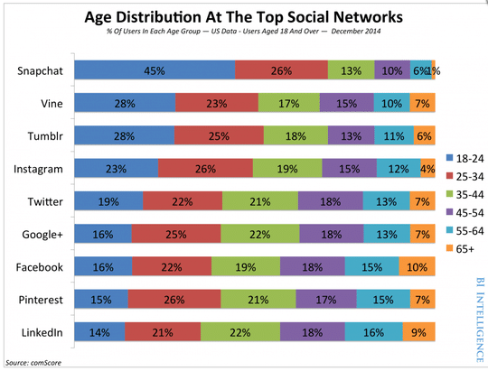 - Pour les 18-45 ans, les réseaux sociaux efficaces sont assez variés : Vine, Tumblr, Pinterest, etc…