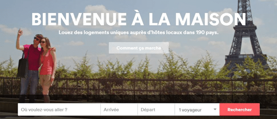 Ci-dessous retrouvez l’exemple de airbnb qui permet à des particuliers de louer leur logement à d’autres particuliers.