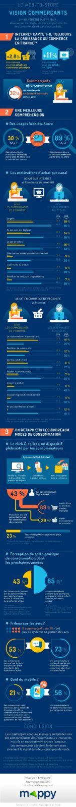 Mappy et BVA ont réalisé la 3ème édition du baromètre Web to Store en cette année 2015. Le digital est bel et bien présent à toutes les étapes du parcours d’achat du consommateur. Toutefois, en ce qui concerne les commerçants, les pratiques ne sont pas encore tout à fait au point.