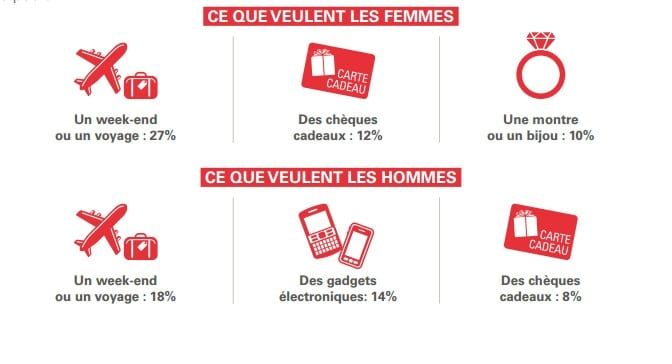 D’après l’étude réalisée pour eBay, pour 22% des Français, c’est un voyage qui serait le meilleur cadeau de Noël. Viennent ensuite les gadgets électroniques, les chèques-cadeaux (10%) et les bijoux, montres et les cadeaux du genre « soins beauté, pilotage…» (7%).