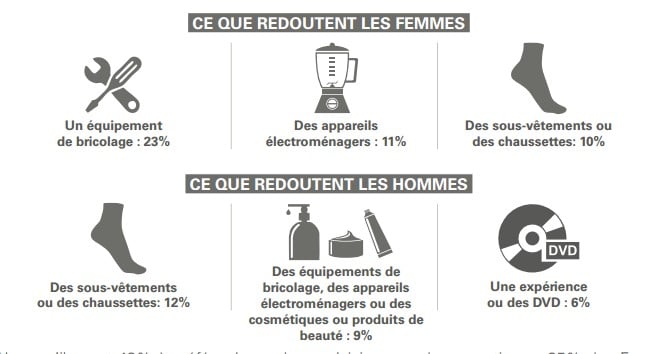 Dès le 25 décembre, de nombreux cadeaux sont revendus. Il semblerait que les pires cadeaux soient : les outils de bricolage (16%), les sous-vêtements et chaussettes (11%) et les appareils électro-ménagers (10%).