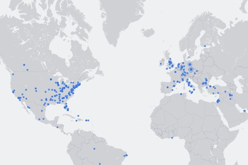 Cette carte montre des flux vidéo Live en instantané dans le monde. Facebook montre seulement les vidéos qui méritent une attention particulière, c’est-à-dire celles qui ont un grand nombre de téléspectateurs.