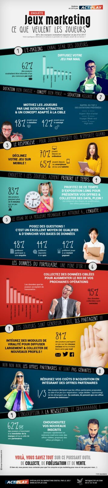 - Misez sur l’emailing. 62% des joueurs souhaitent être informés d’un jeu-concours par email. Les SMS et les réseaux sociaux ne représentent que 22%.