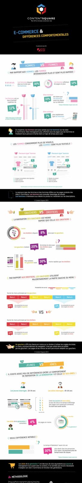 Aujourd’hui sur notre blog, nous nous intéressons à l’infographie réalisée par Content Square. Celle-ci décrit et explique les différences comportementales entre les hommes et les femmes par exemple mais aussi entre les droitier et les gauchers. Y a t-il réellement une différence dans les comportements sur le web ?