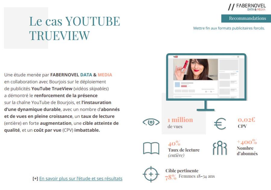 Voilà ci-dessous une étude de cas concernant le format TrueView de Youtube qui permet aux internautes de passer les publicités.