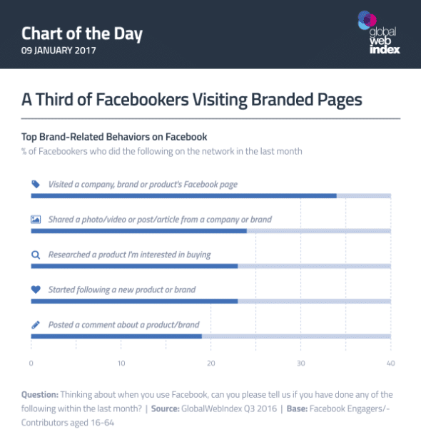 D’après Globalwebindex, plus d’1/3 des utilisateurs visitent des Pages Facebook d’entreprise. Comment atteindre ces utilisateurs et leur proposer du contenu engageant ? La première étape consiste à optimiser votre page selon 4 actions plutôt basiques.