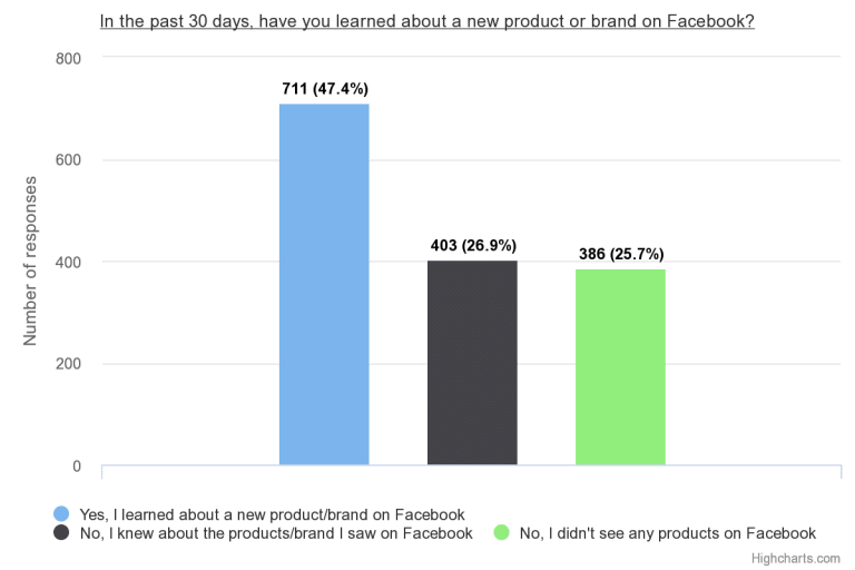 Lors de l’enquête, 47,4% des répondants ont indiqué qu’un nouveau produit ou une nouvelle marque sur Facebook leur avait été proposé ces 30 derniers jours.