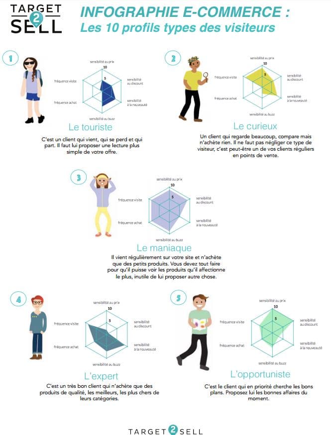 Target2Sell nous partage sa dernière infographie mettant en avant 10 profils types de consommateurs sur internet.