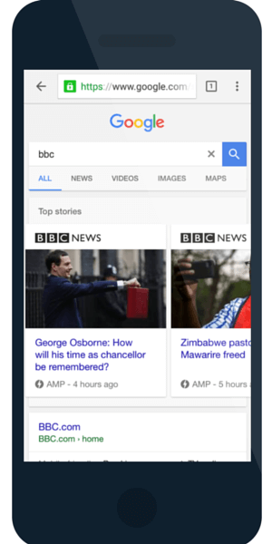 Les pages AMP s’affichent également en haut des résultats de recherche par défaut (avec une petite icône en gras). Ainsi, vos pages web AMP peuvent potentiellement vous donner un grand coup de pouce en termes de visibilité.