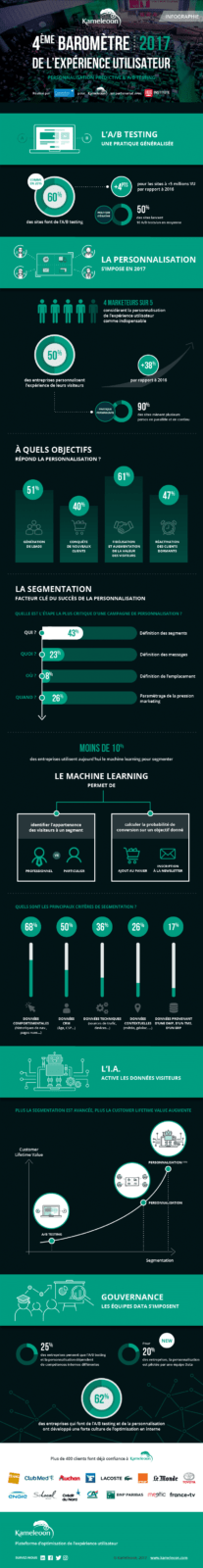 Kameleoon a dernièrement publié son 4ème baromètre de l’expérience utilisateur. Cette étude a été réalisée par Converteo en partenariat avec le HUB Institute. Que retenir ? Voilà un résumé des éléments à prendre en compte avant la fin de l’année 2017 !