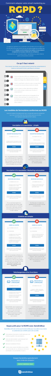 Découvrez des exemples de formulaires adaptés au RGPD dans l’infographie ci-dessous réalisée par Sendinblue.