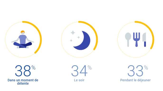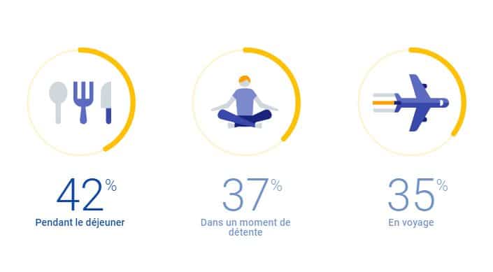Les applications d’actualité sont le plus souvent utilisées pendant le déjeuner (42%), dans un moment de détente (37%) ou bien en voyage (35%).