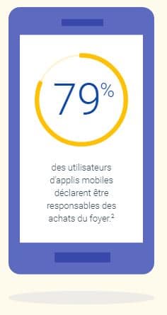 79% des utilisateurs d’applications mobiles indiquent être responsables des achats du foyer. Un grand nombre d’utilisateurs d’applications ont donc un fort pouvoir décisionnel quant aux achats quotidiens. Touchez-vous cette audience à fort potentiel ?
