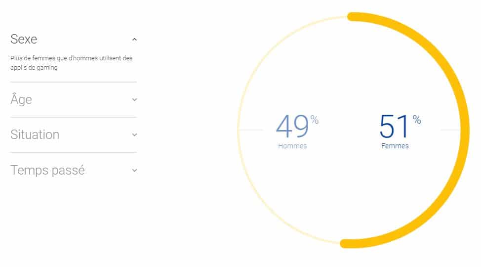 Les utilisateurs d’applications de gaming sont à parts égales des hommes (49%) et des femmes (51%).
