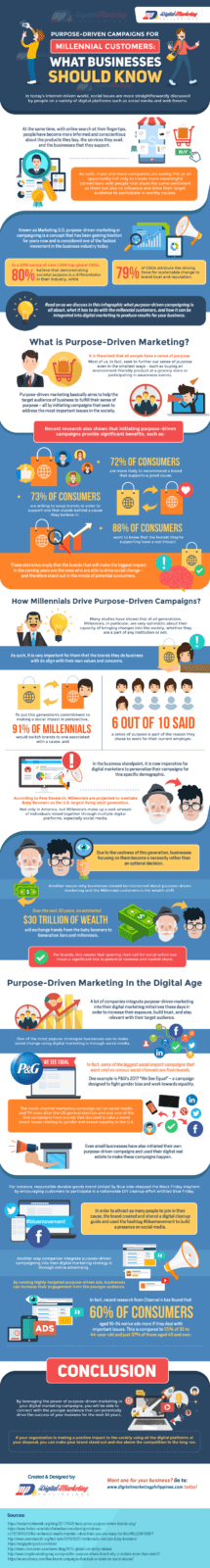 En exploitant la puissance du purpose driven marketing dans vos campagnes digitales, vous serez en mesure de vous connecter au public plus jeune (Millenials), ce qui peut potentiellement contribuer au succès de votre entreprise pour les 50 prochaines années. Si votre organisation a un impact positif sur la société et en utilisant toutes les plateformes numériques à votre disposition, vous pouvez faire en sorte que votre marque se démarque et devance la concurrence sur le long terme.