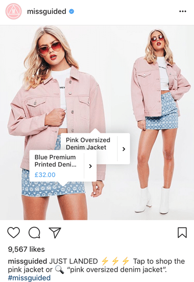Des marques comme Missguided utilisent les messages Instagram « Shoppable » pour faciliter le parcours des clients.