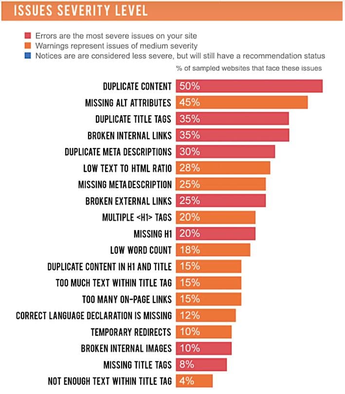 Les erreurs courantes de référencement sur le site énoncées ci-dessous :