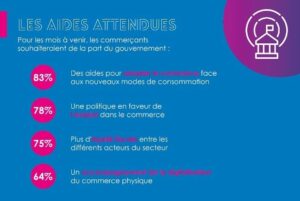 Une politique attractive en faveur de l’emploi dans leur secteur est ainsi une attente formulée par près de 8 répondants sur 10. Ils sont également 75% à réclamer une plus grande équité fiscale entre les différents acteurs du commerce, tandis que 64% souhaiteraient un accompagnement de la part de l’État dans la digitalisation du commerce physique.