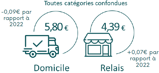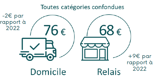 Extrait : les prix de livraison moyens à domicile et en relais, et les montants de panier à atteindre pour bénéficier de la livraison offerte, toutes catégories confondues.